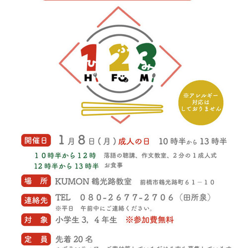 123の会(ひふみのかい)は、群馬県前橋市で開催する学習支援型子ども食堂です。