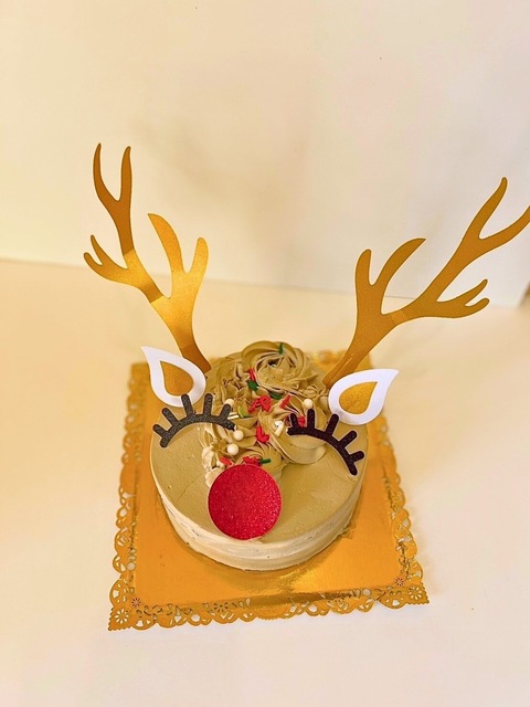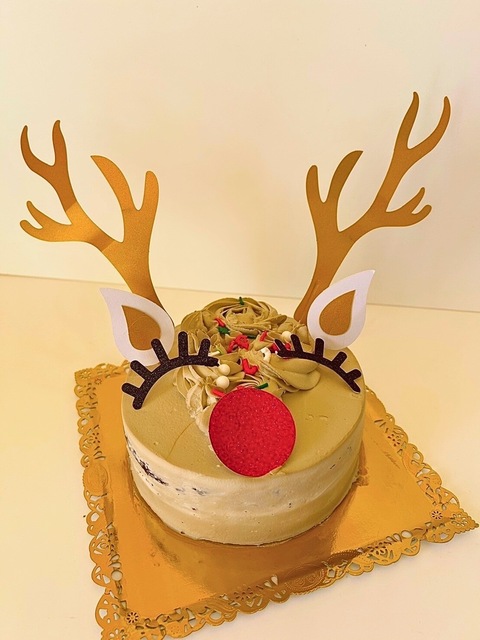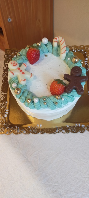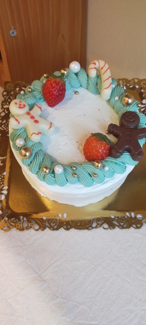 クリームをリースのように絞り、可愛らしい飾りを配置しました。
