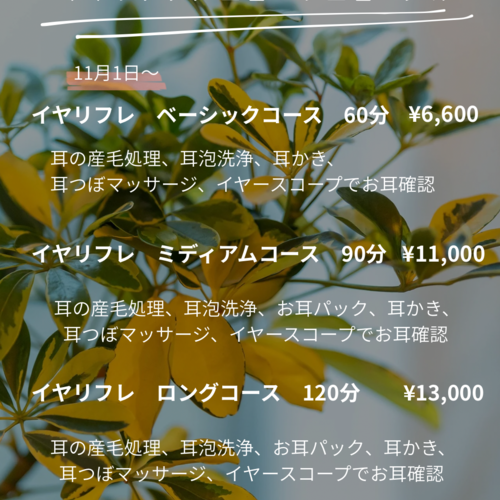 【11月から】イヤリフレメニューリニューアル