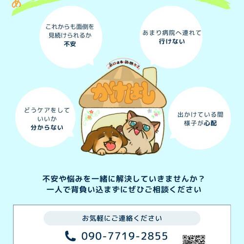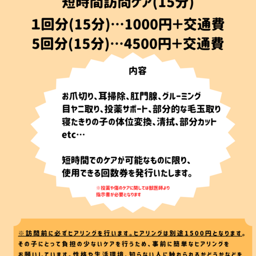 山口県防府市を中心に、犬・猫の訪問ケアを行っています。