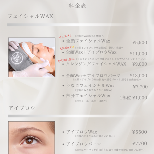 フェイシャルWAX脱毛とアイブロウの専門サロンてす。