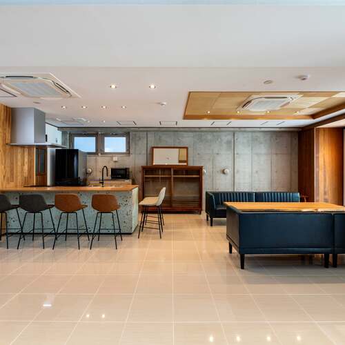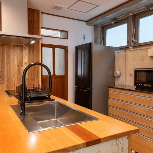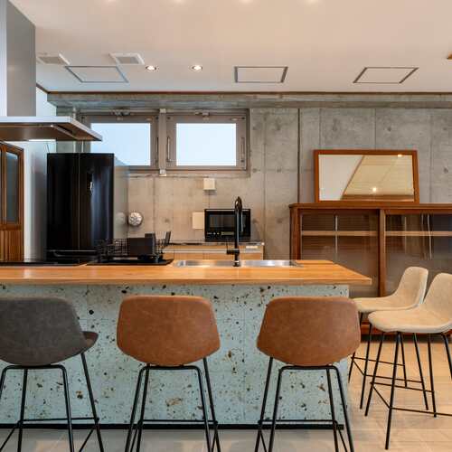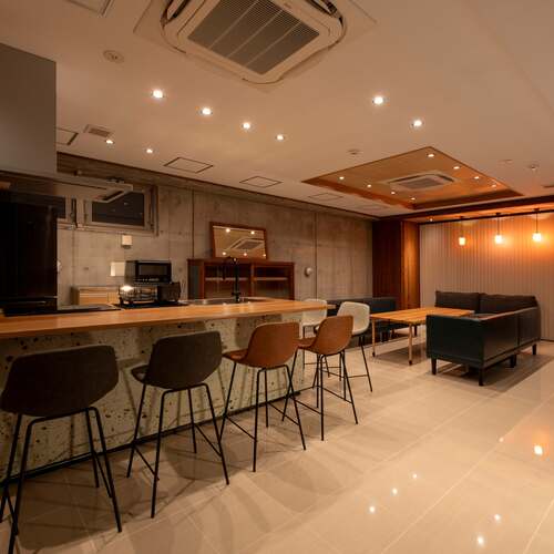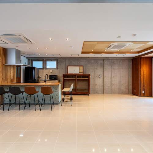 木製カウンターキッチンをはじめ、リラックスできるレンタルスペースです