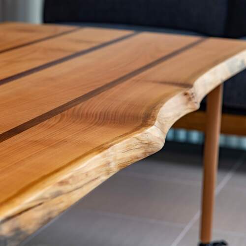 💡 無垢材のインテリアは可動式、ソファーも移動して備品の丸椅子を配置すれば小規模なセミナー等にも対応