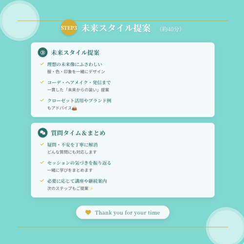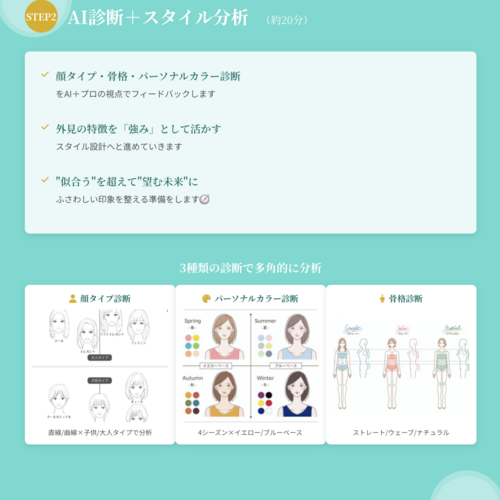 顔タイプ・骨格・パーソナルカラーなどをやさしく診断。