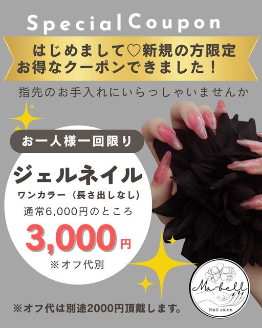 【新規:初回限定】3,000円ポッキリ☆お得なネイルのクーポンです!