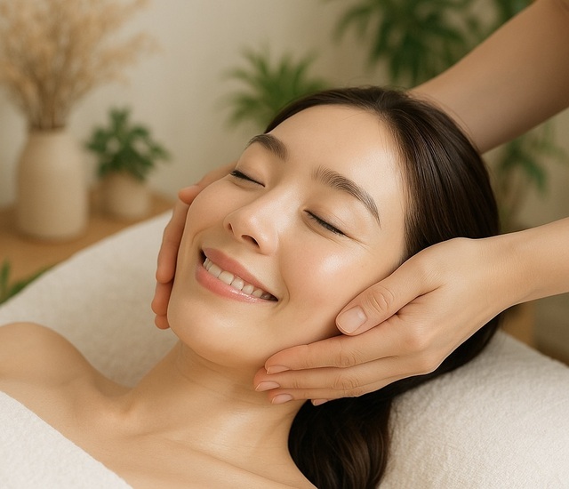 Alphaの骨筋メソッドに、小顔矯正・肩甲骨・ヘッド・骨盤調整・脚リンパなどのオプションを組み合わせることで、より深く筋肉やリンパにアプローチでき、血流や自律神経のバランスが整いやすくなります。