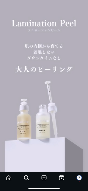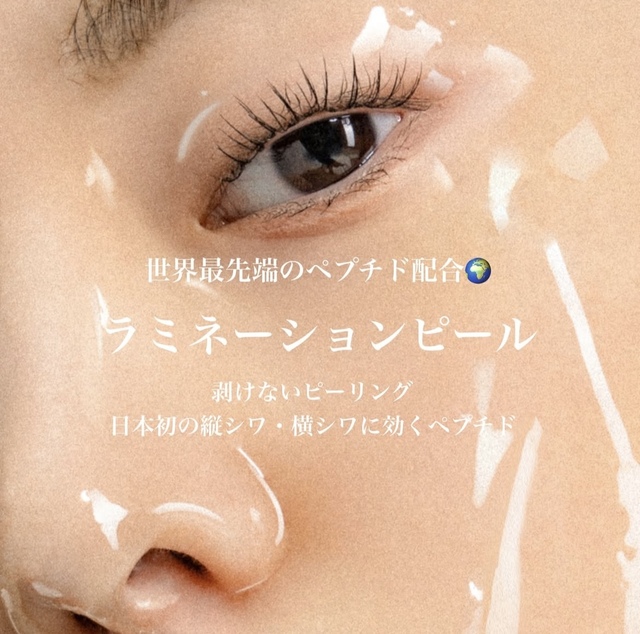 古い角質を穏やかに除去し、肌に美容成分をラミネート(重ね合わせる)するように補給することで、肌のターンオーバーを整え、ハリ・ツヤ・透明感を高める低刺激のピーリング施術です。剥離やダウンタイムがなく、週1回の頻度でも可能な点が特徴で、エイジングケアや毛穴、くすみ、ざらつきなど、様々な肌悩みに対応できます♡