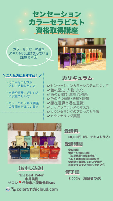 ◼︎センセーションカラーセラピスト資格取得講座◼︎