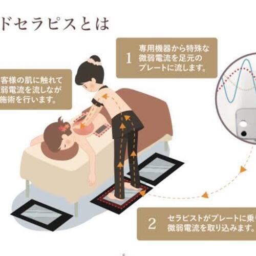 特殊な機械から流れるテラヘルツ波の微弱電流を、セラピストの身体を介してお客さまにオールハンドで流し整える、気功のようなトリートメント!