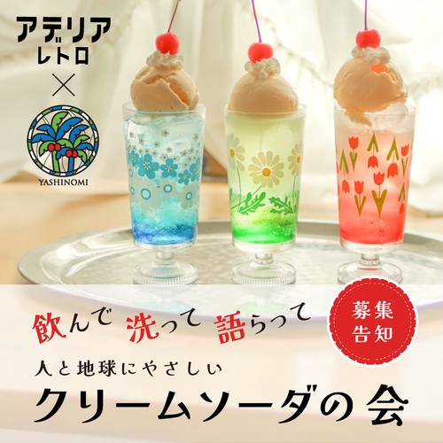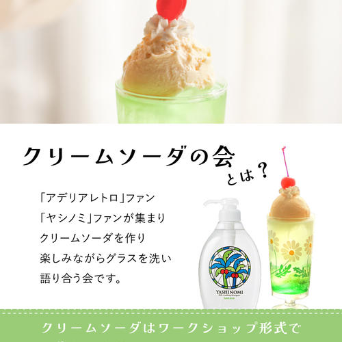 初めてクリームソーダを作りましたが、とても楽しかったです。ヤシノミ洗剤とアデリアレトロさんの担当者さんも優しくて、それぞれの会社についてもいろいろなこどが知れました。また機会があれば参加したいです。ありがとうございました。