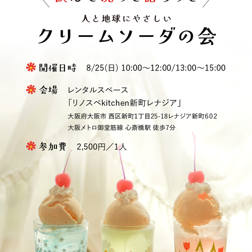とても楽しくあっという間に終わってしまうぐらいでした。参加された他の方たちとも楽しくおしゃべりができてクリームソーダもおいしくて大満足です。ヤシノミ洗剤もさっそく家でつかってみました。次回から購入しようと思います。また関西でこのようなイベントをしていただきたいです。