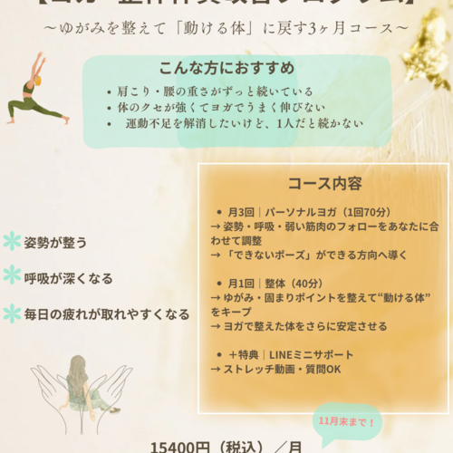 【ヨガ×整体の体質改善プログラム、3ヶ月コースを作りました】