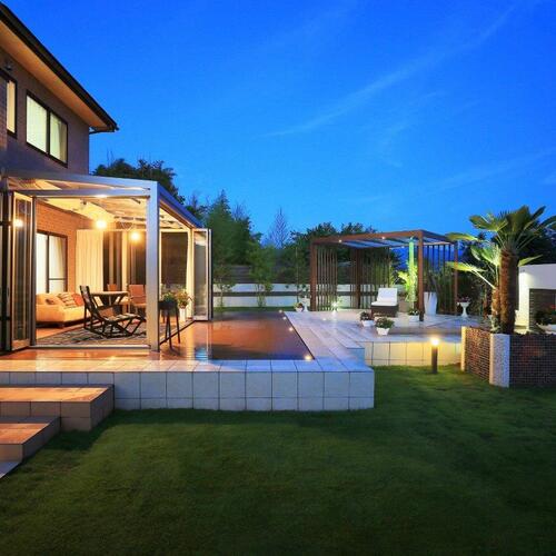 ガーデン&エクステリア専門展示場。展示場のテーマは、リゾートスタイルガーデンとモダンスタイルのファサード。最新の物から定番の商品まで多数の素材を使用しており、寒暖差や風雨にさらされた経年の変化も実際に見ていただけます。