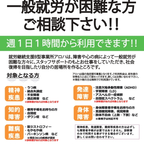 愛知県日進市にある障害者就労継続支援B型事業所アロハです!