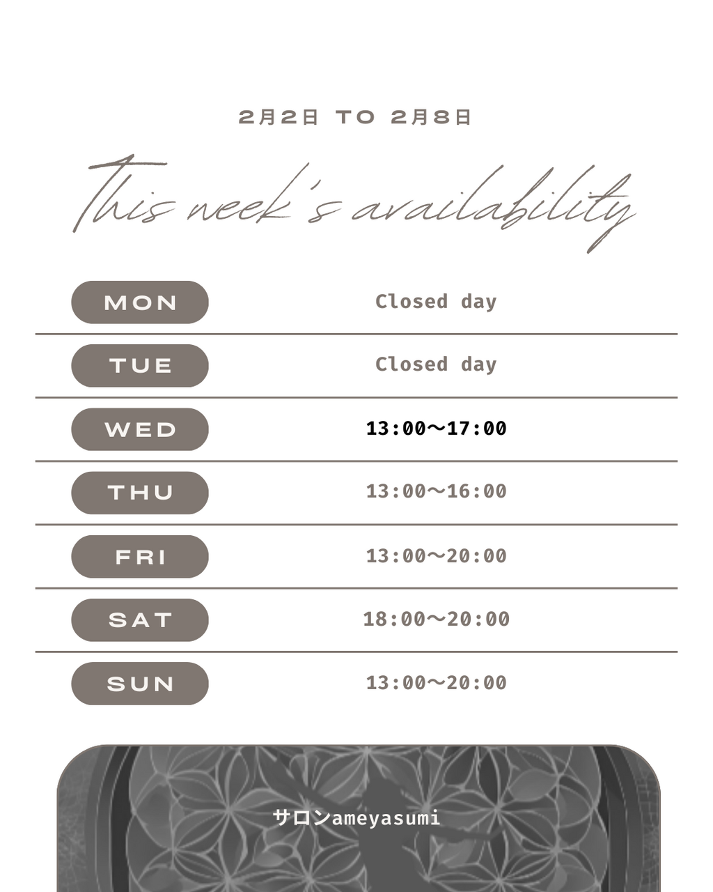 土・日 13:00 - 20:00