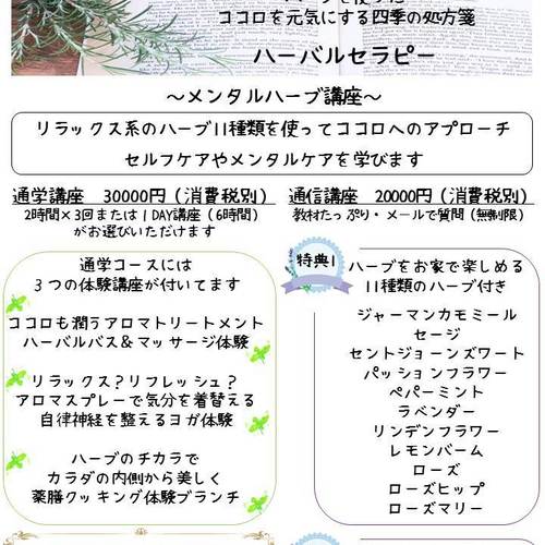 ハーブ教室?メンタルケアに❤ハーバルセラピーを学んでみませんか?