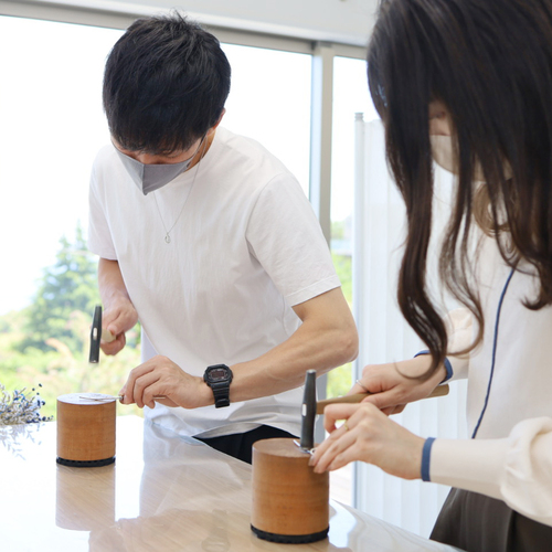 バナーを使って金属を結ったり、金づちを使って模様をつけたりして非日常的な体験で愛着のわくアクセサリーが作れます。