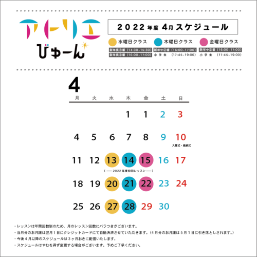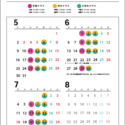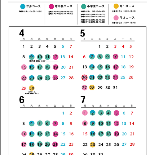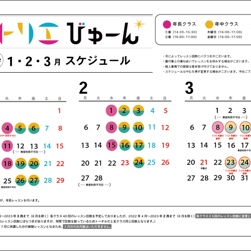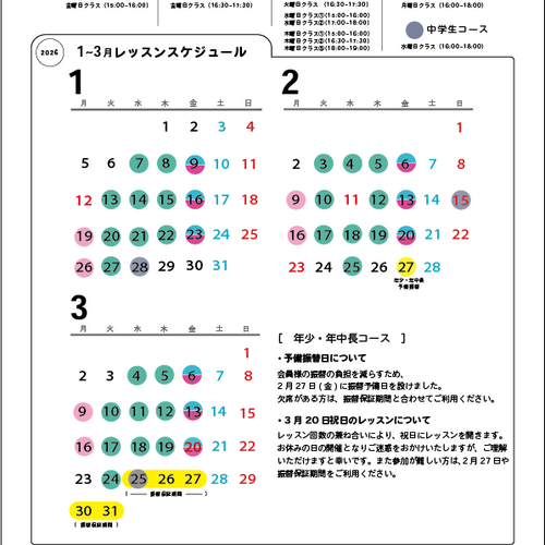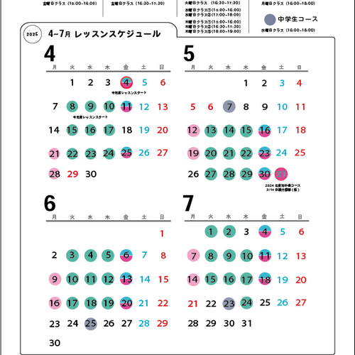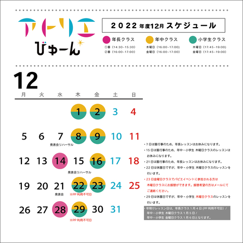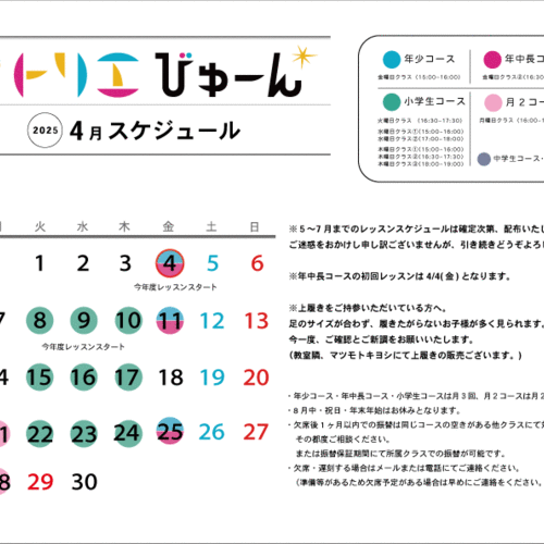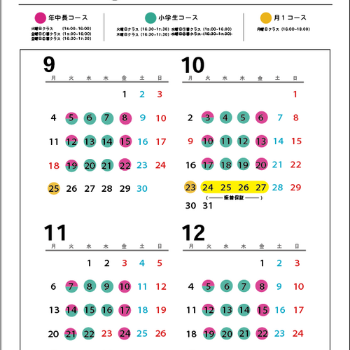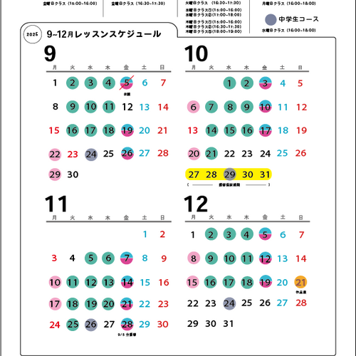 9月・10月・11月・12月レッスンスケジュール ※2025/10/15更新