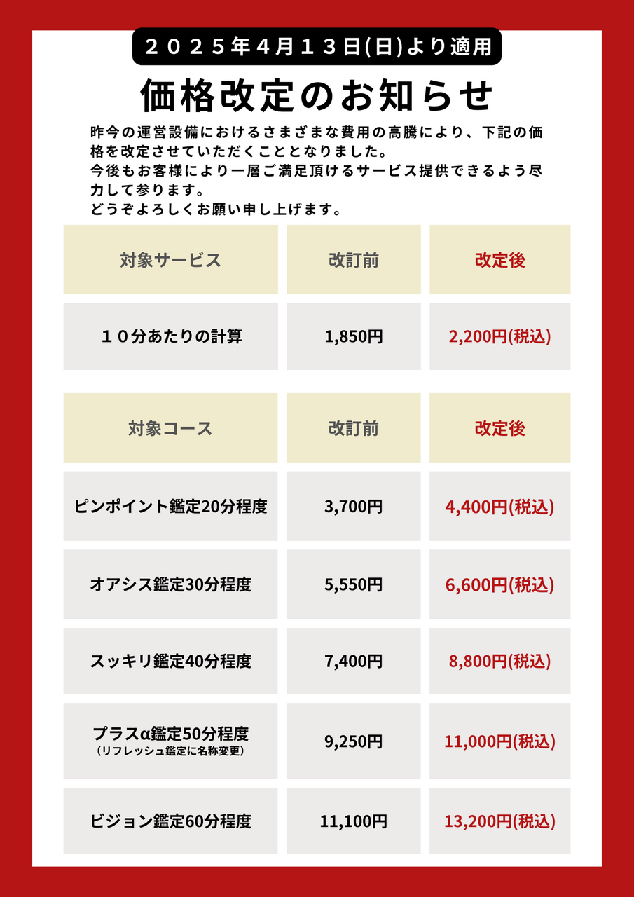 価格改定のお知らせ