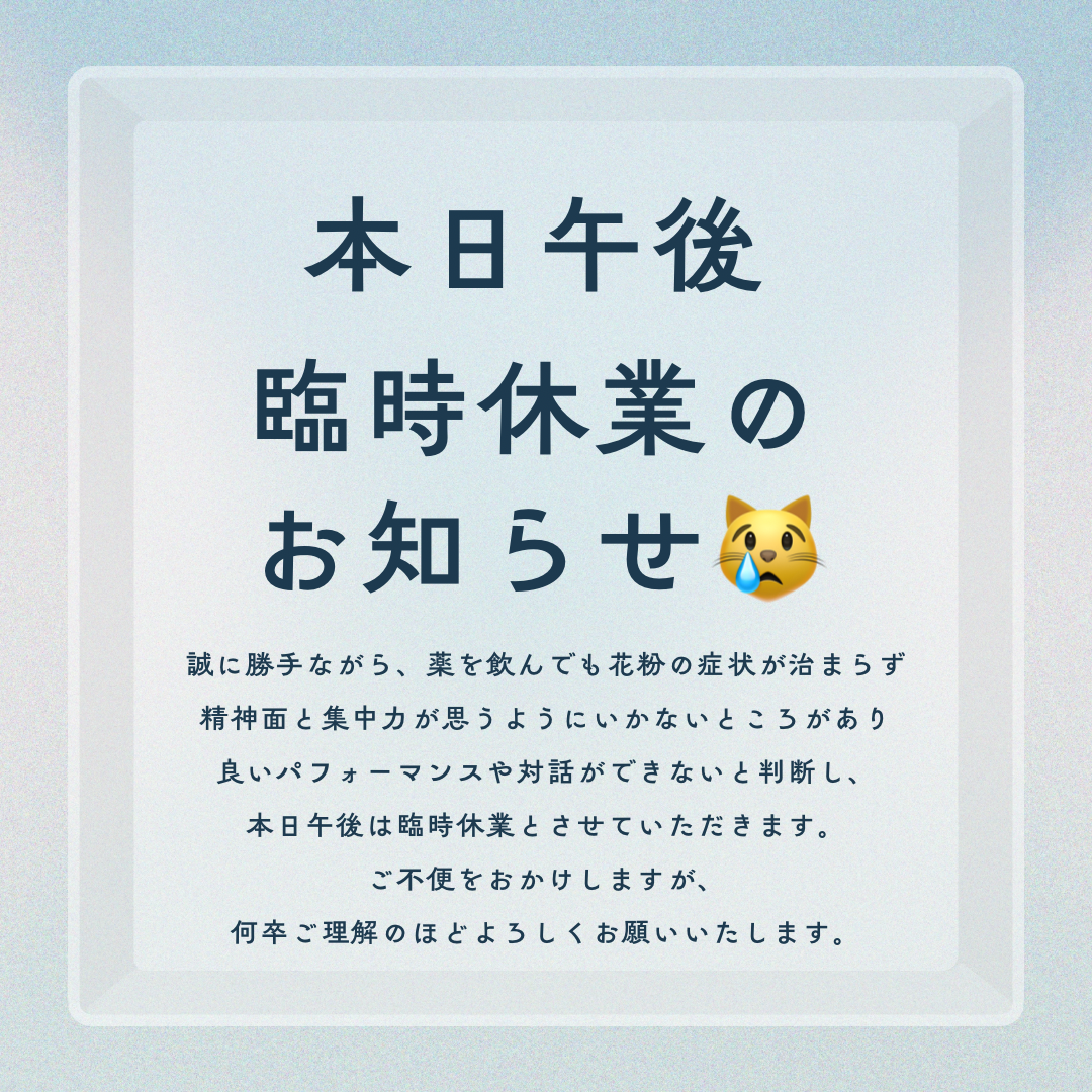 本日午後から臨時休業とさせていただきます。
