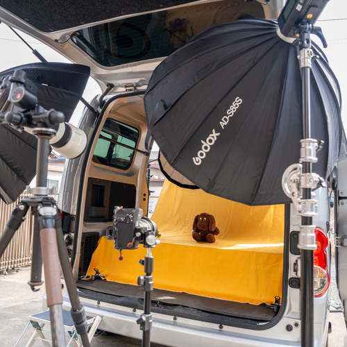 AY. CAR STUDIOでは写真スタジオの機能を搭載した専⽤⾞がご⾃宅の駐⾞場まで伺い
