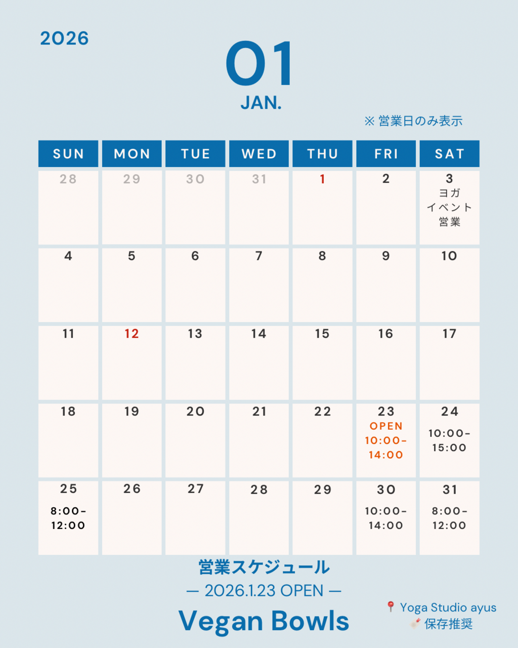 【1月営業日】Vegan Bowls