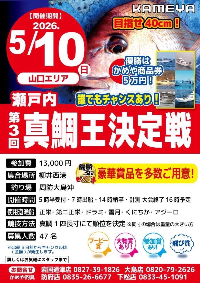 第3回真鯛王決定戦タイラバ大会参加者募集中です