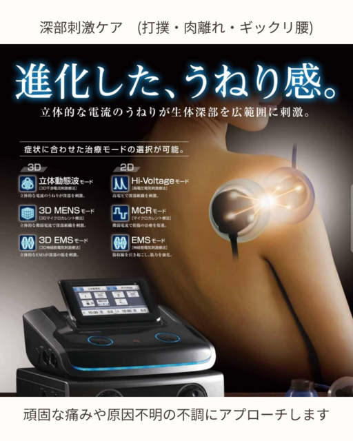 多彩な電気刺激が筋肉の深層・神経ラインまでしっかり届き、