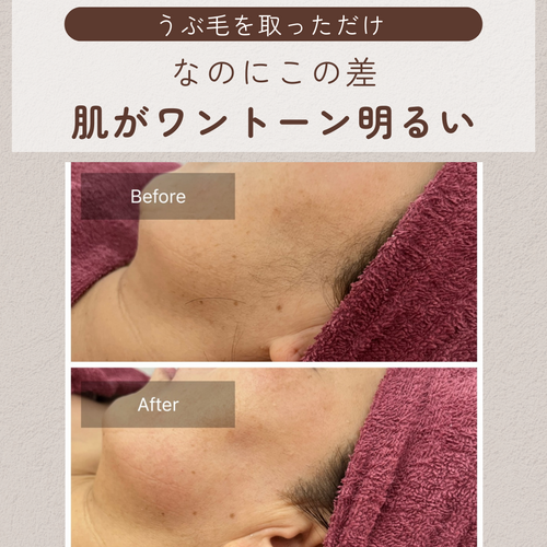 【お顔】うぶ毛を取っただけ。なのにこの差。肌がワントーン明るい