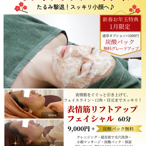 【お顔・1月限定】表情筋から引き上げるリフトアップフェイシャル|炭酸パック無料グレードアップ
