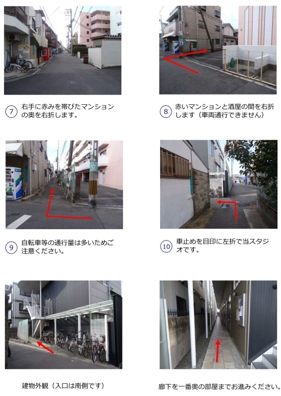 ⑧の曲がり角が、かなり細い道なのでわかりづらくなっています。ご注意ください!