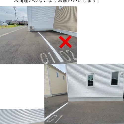 (GENKY新田塚店の駐車場を横断して通り抜け、すぐに左折。右手に見える緑の扉の白い建物がサロンとなります。お車は01、もしくはピロティにお停めください。)