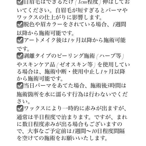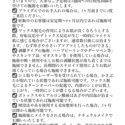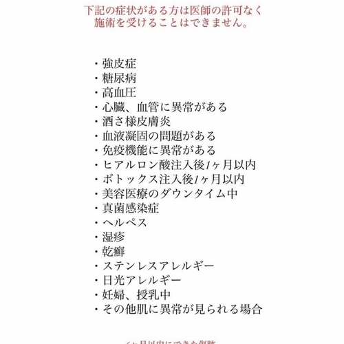 施術当日は禁忌事項・注意事項をご理解いただけたものとして施術させていただきます。
