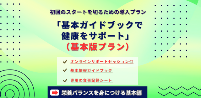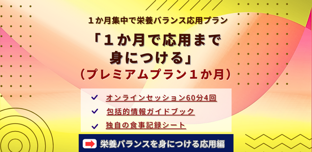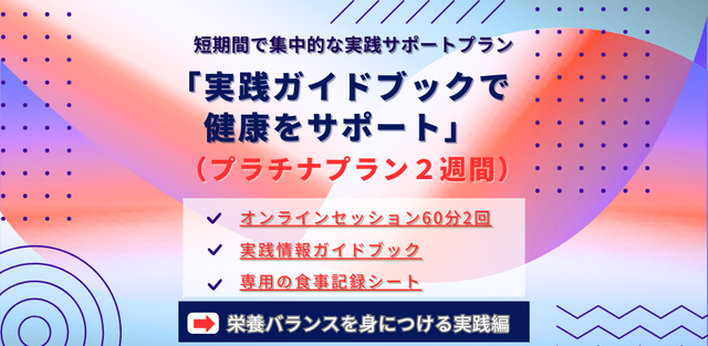 ※このプランは1回のオンラインセッションで完結し、基本的な栄養バランスの知識を習得するための導入プランです。お気軽にお問い合わせください!