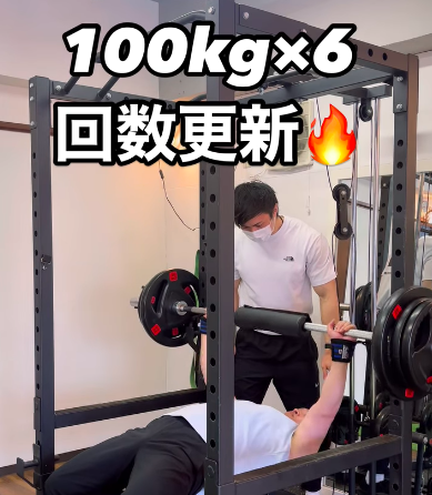 お客様のベンチプレス100kg×6回の回数更新への様子