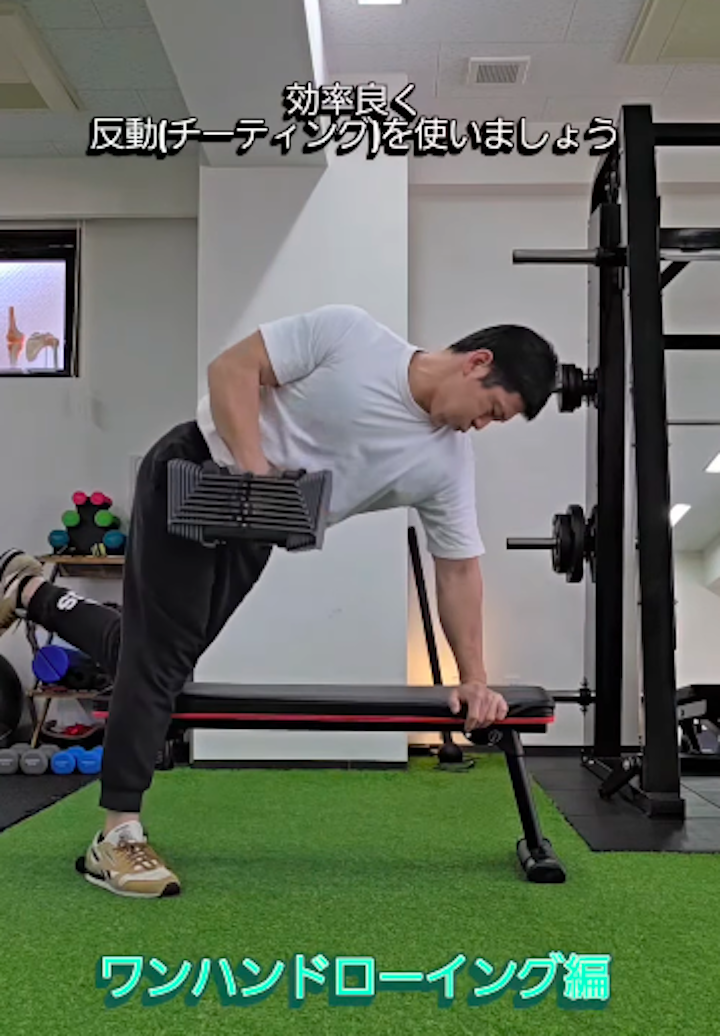 ダンベルロウで力を引き出す、反動の使い方