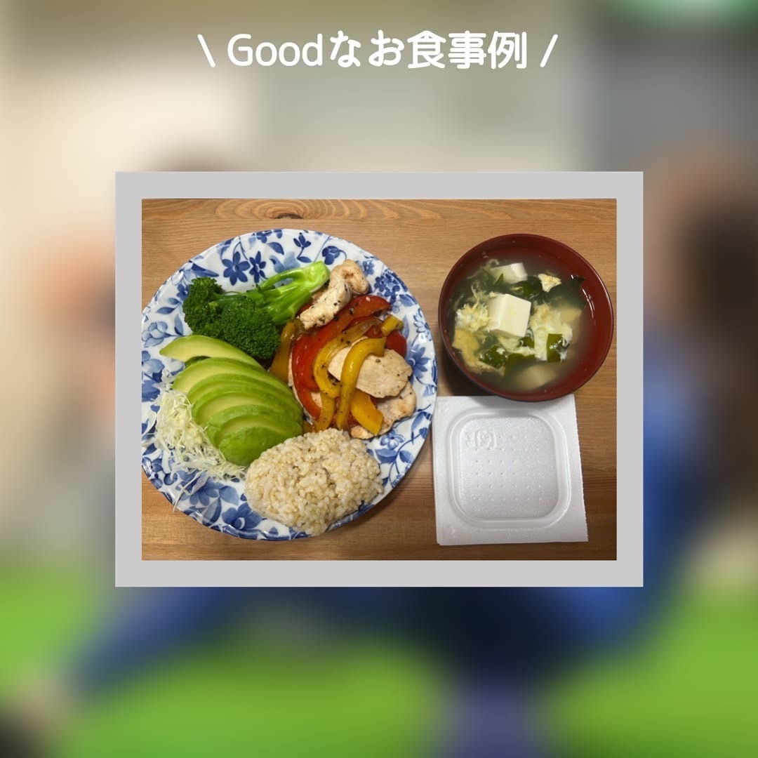 ダイエット食事例(玄米、鶏胸肉、納豆、お豆腐のお味噌汁、ブロッコリー、アボカドサラダ)