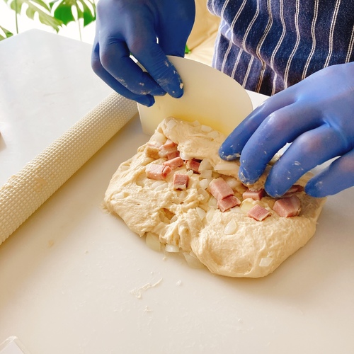 パンは季節によって水分量が微妙に違います。先生は生地の感触を確かめながら、わかりやすく丁寧に指導してくださいます。
