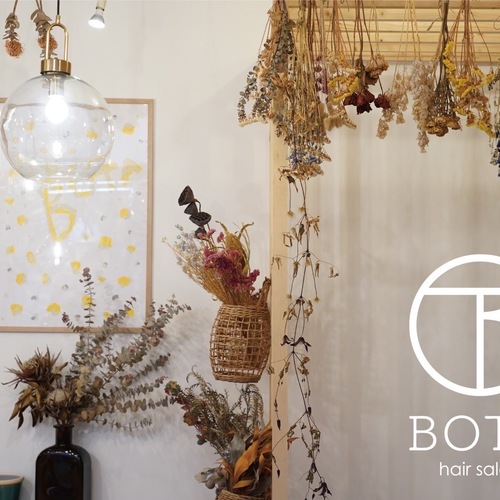 "北海道 札幌 円山 美容室 BOTA hair salonです。 店内は温かみのある木材で覆われた自然味ある空間に、ドライフラワーや観葉植物を飾り、リラックスして癒やしのひとときをお過ごしいただける美容室です。 プライベートサロンですので、小さなお子様やお連れ様がお待ちいただけるスペースもございます♪(メニューによっては同時間でご案内可能ですのでご相談下さい 10時開店・19時閉店で、円山公園駅から徒歩7分、お車の場合は近隣指定駐車場(スミタスパーク南5条西23丁目)の駐車券をお渡ししております。 薬剤などは身体や頭皮、髪に優しいものを取り入れております。 カラー剤はツンとした香りがなく塗布の際頭皮の刺激を抑えてくれる、オーガニックのクレイカラーをご用意しております。 一番人気メニューのヘッドスパは、酵素の力で頭皮の汚れ、老廃物を浮かせて、幹細胞の力で頭皮のターンオーバーのサイクルを正常整えてくれます。頭皮のたるみ、血行促進、抜け毛・薄毛・乾燥対策におすすめです♪ 髪質改善は香りの強くないものをご用意しております。 毛髪の芯がしっかり整うことにより、手触りのよいシルクの様な滑らかな、潤い艶感のある質感に導きます。 結婚式や卒業式・成人式のヘアセット、ヘアアレンジも行っております。 特別な日の早朝予約や時間外のご予約も承っておりますのでご相談ください。 店内の一角にはハンドメイド作家様のヘアアクセサリーを販売いたしております。 商品を使ったアレンジをご提供する事も可能です。 円山、旭ヶ丘周辺で美容室をお探しの方は是非一度BOTA hair salonへお越しください。お待ちしております♪"