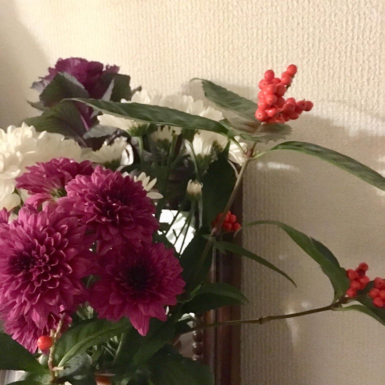 お仏壇のお花の南天かな?