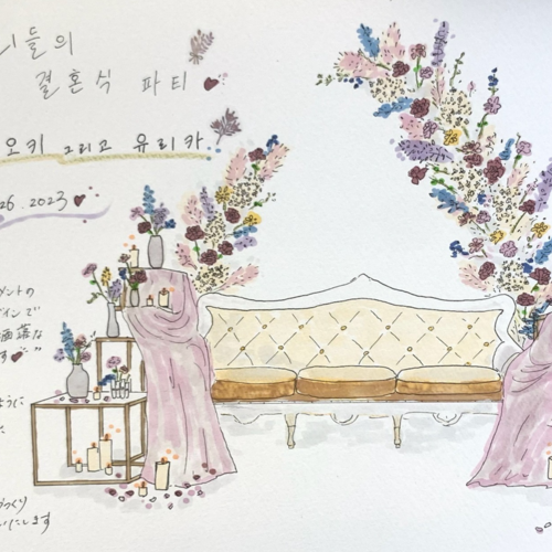 披露宴の装飾のコンセプトをお伝えさせて頂きました。夫婦で意見が割れたところも、お互いの希望を取り入れて装飾など提案してくれました!自分の中でふんわりとしていたイメージがどんどん形になり、打ち合わせ中からわくわくしました!とても丁寧に対応して下さり、楽しい打ち合わせの時間を過ごすことができました。ありがとうございました!当日が楽しみです!