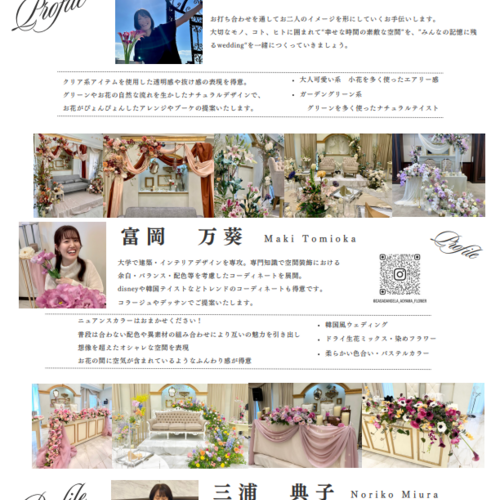 フラワーデザイナーをお選びいただくこともできます。※指名制¥30,000(税別)