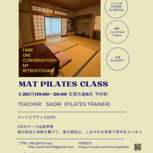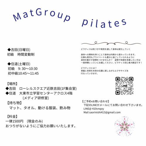 住道ピラティスグループレッスン12月・1月・2月