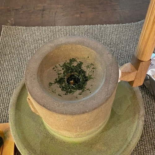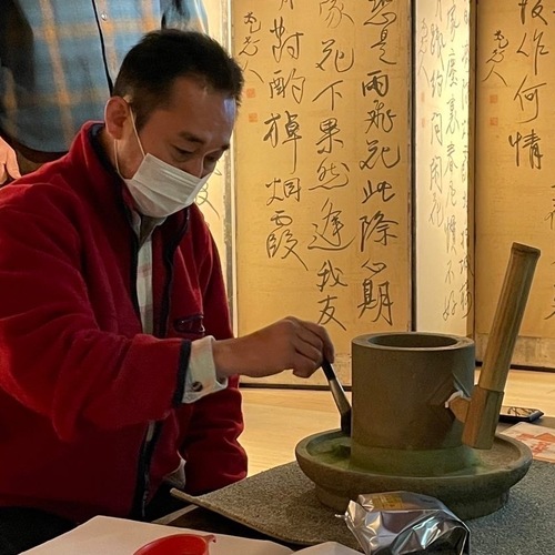 石臼を使って、自分で挽いた犬山茶を、伝統ある犬山焼きで味わい楽しみます。