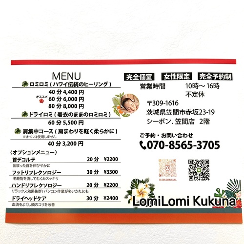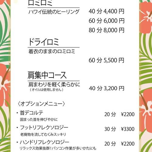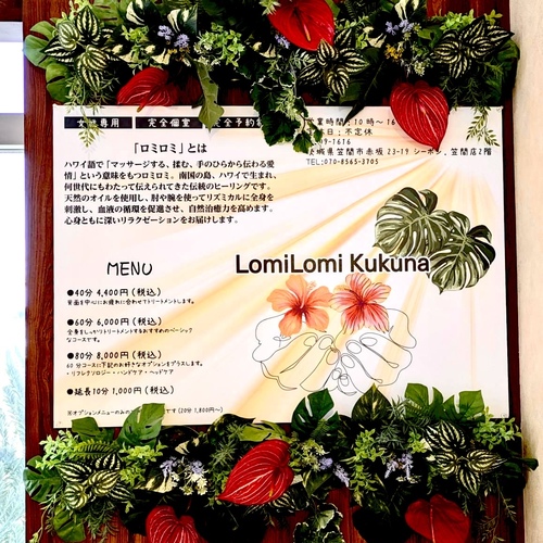 ハワイ伝統のヒーリング、ロミロミを中心とした女性専用サロンです。