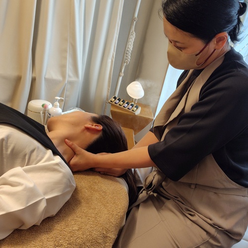 ❇️首のリンパを流す手技がございます。なるべくタートルネックの着用を避けてご来店ください。(無色無臭のローションを使用しますが、施術後にお洋服が湿気る可能性がございます。)
