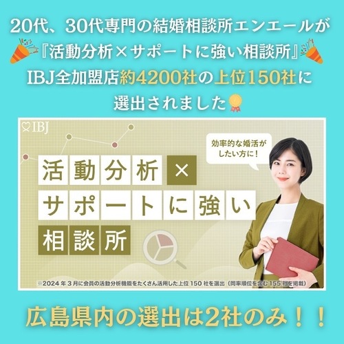 結婚相談所エンエールは20代、30代のより成婚率が高い若年層の婚活に特化し1年以内の成婚を戦略的にサポートいたします。