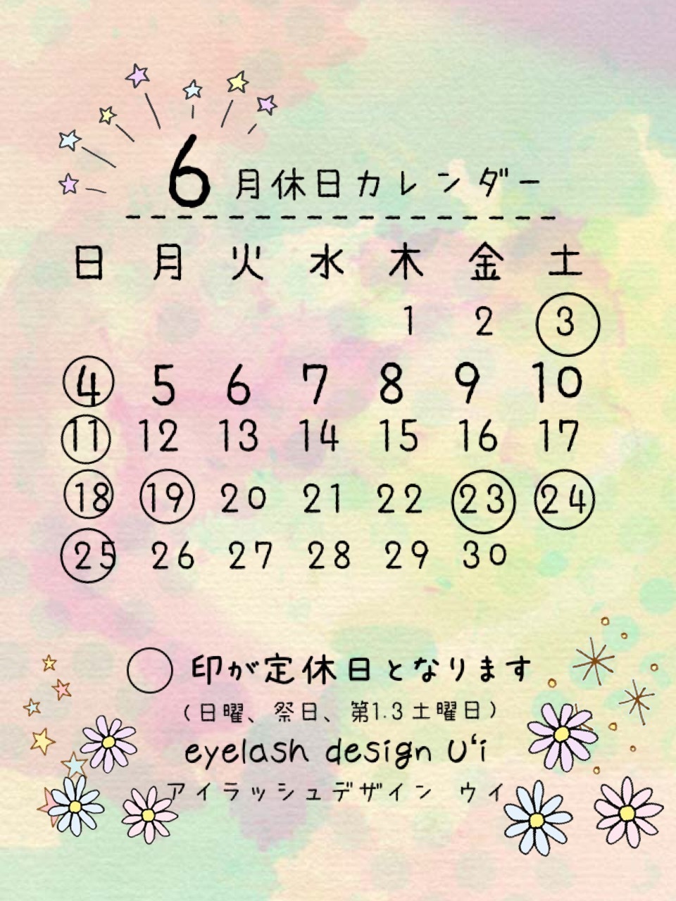 6月の土曜営業日に少し変更がございます。ご不便をおかけいたしますがよろしくお願いします。