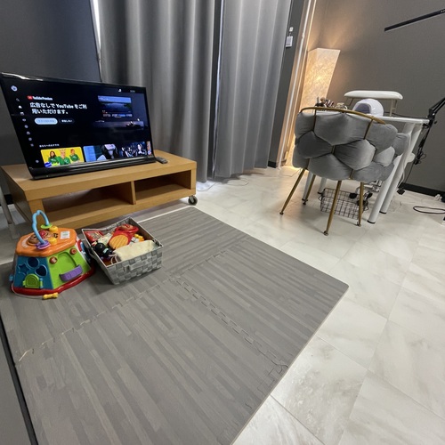 お子様は簡易マットを敷いておもちゃ、YouTubeなどで