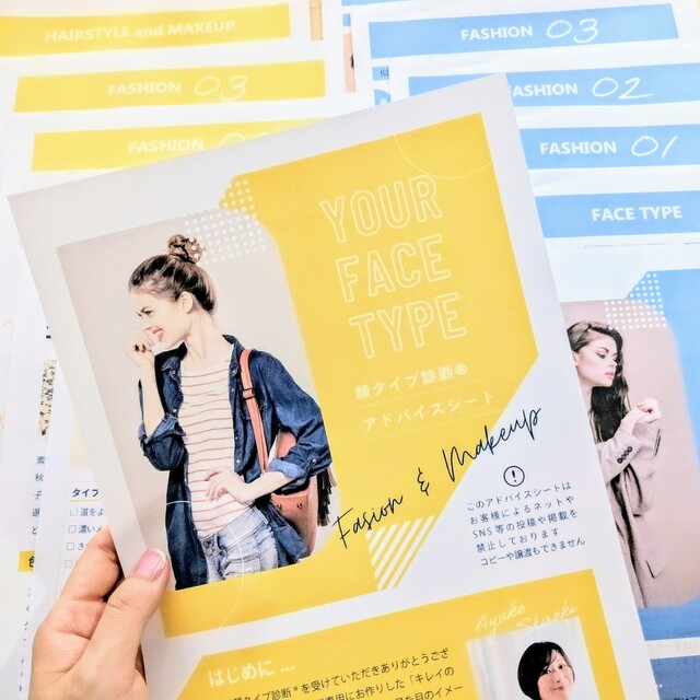 パーソナルカラーだけ骨格診断だけとかは、ネットでも診断可能ですが、顔も含めての診断は似合うアイテムや髪型メイクを含めて事前に資料を用意して下さり、説明が分かりやすく自分に取り入れやすい内容になってました。